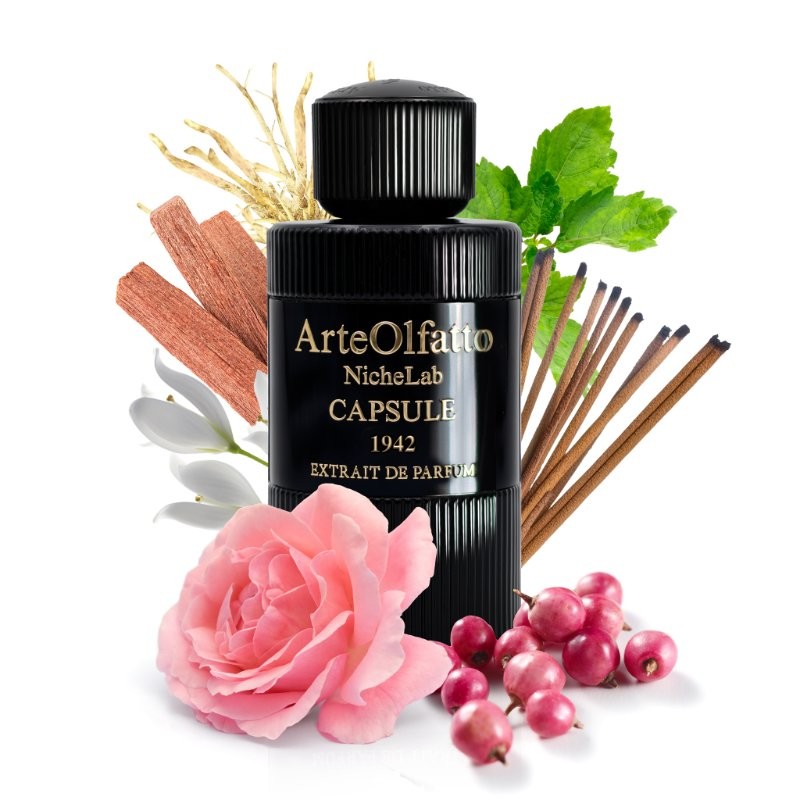 Capsule 1942 è un incontro profondo tra spiritualità e sensualità. Le sue note raccontano un decennio segnato dalla rinascita dopo la guerra, evocando atmosfere intense e cariche di significato. La rosa e il pepe rosa introducono il profumo con eleganza e vitalità. Il cuore, con fiori bianchi e incenso, svela un’anima mistica e senza tempo. La base calda e balsamica di oud, sandalo, patchouli e muschio dona una scia profonda e raffinata, simbolo di resilienza e bellezza ritrovata.