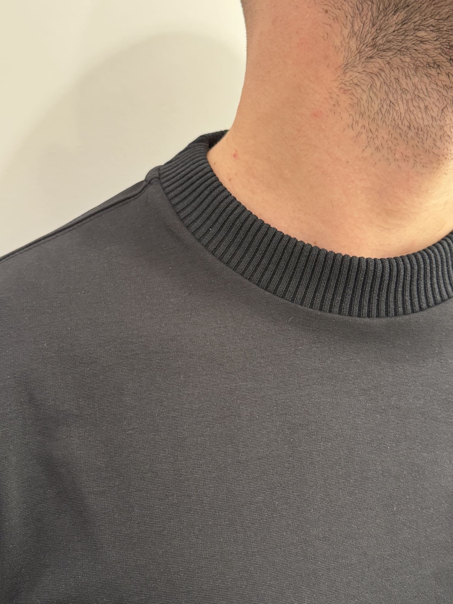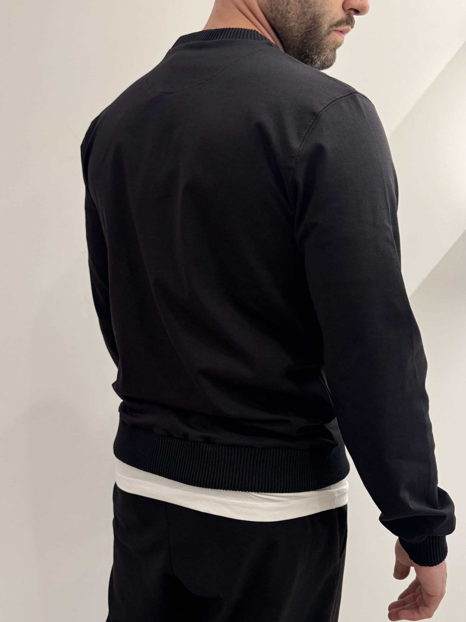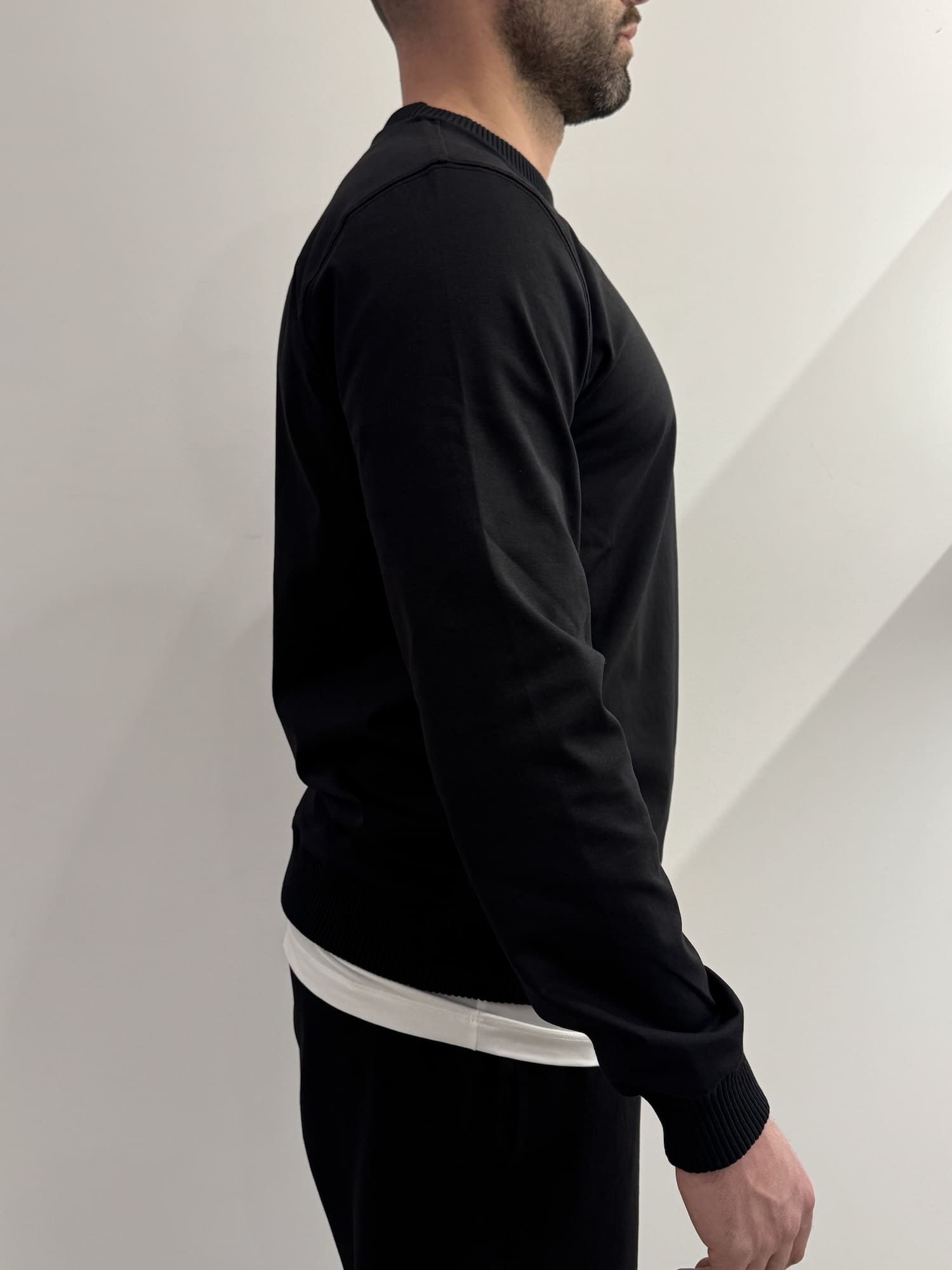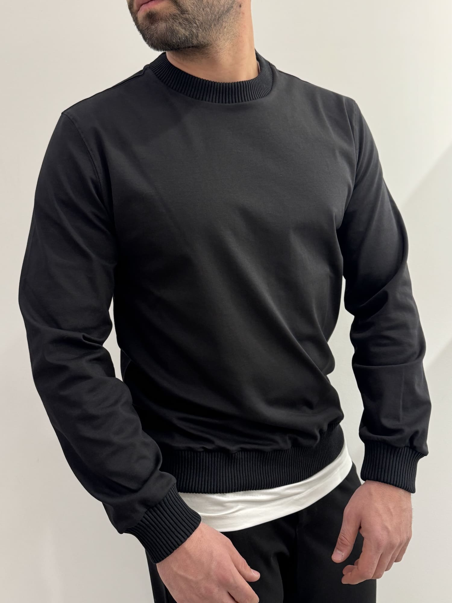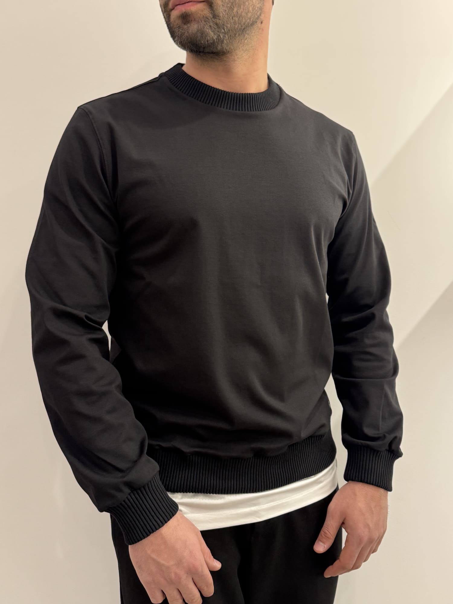 Felpa girocollo con bordi a coste in misto cotone alta qualità.