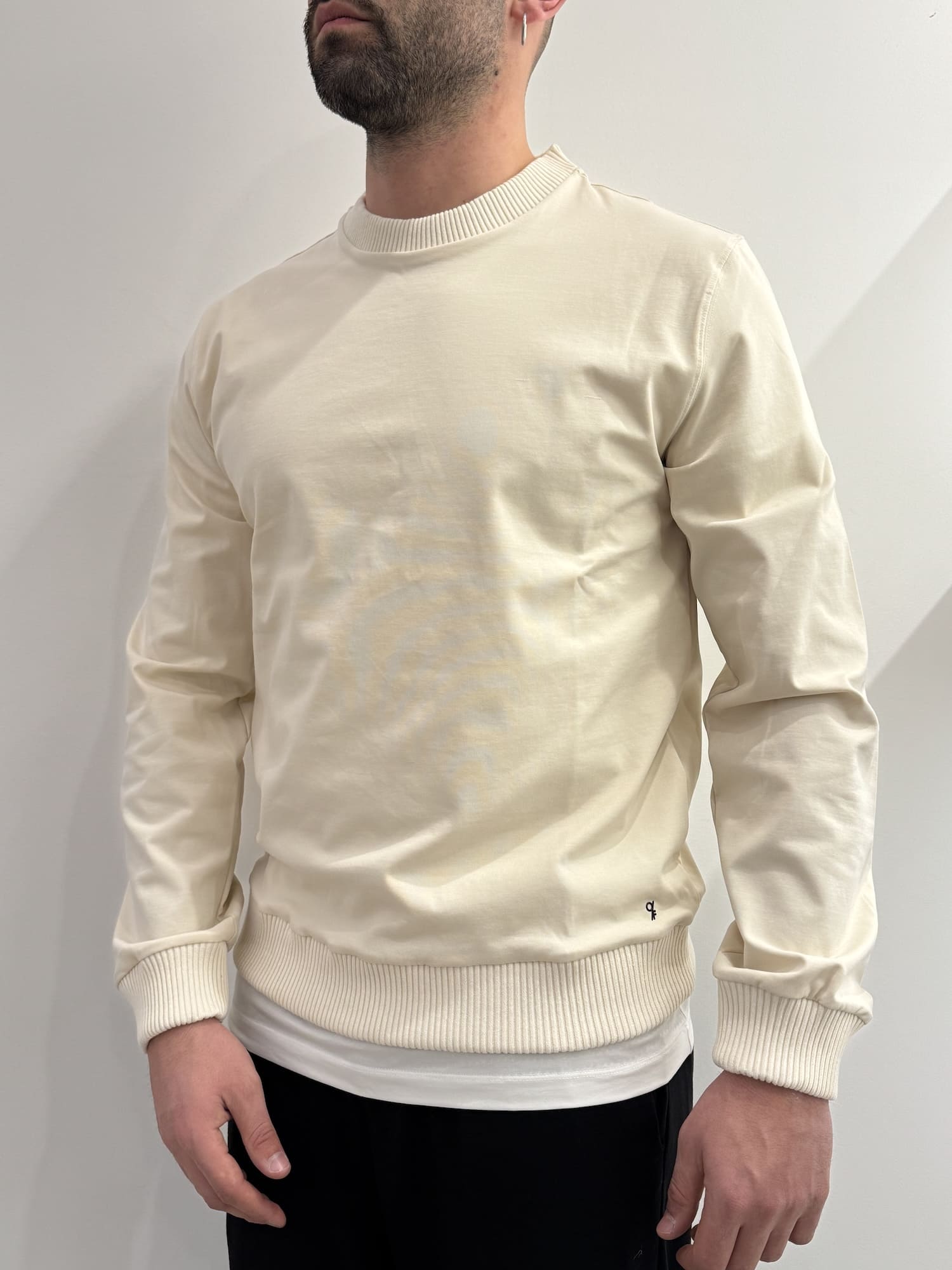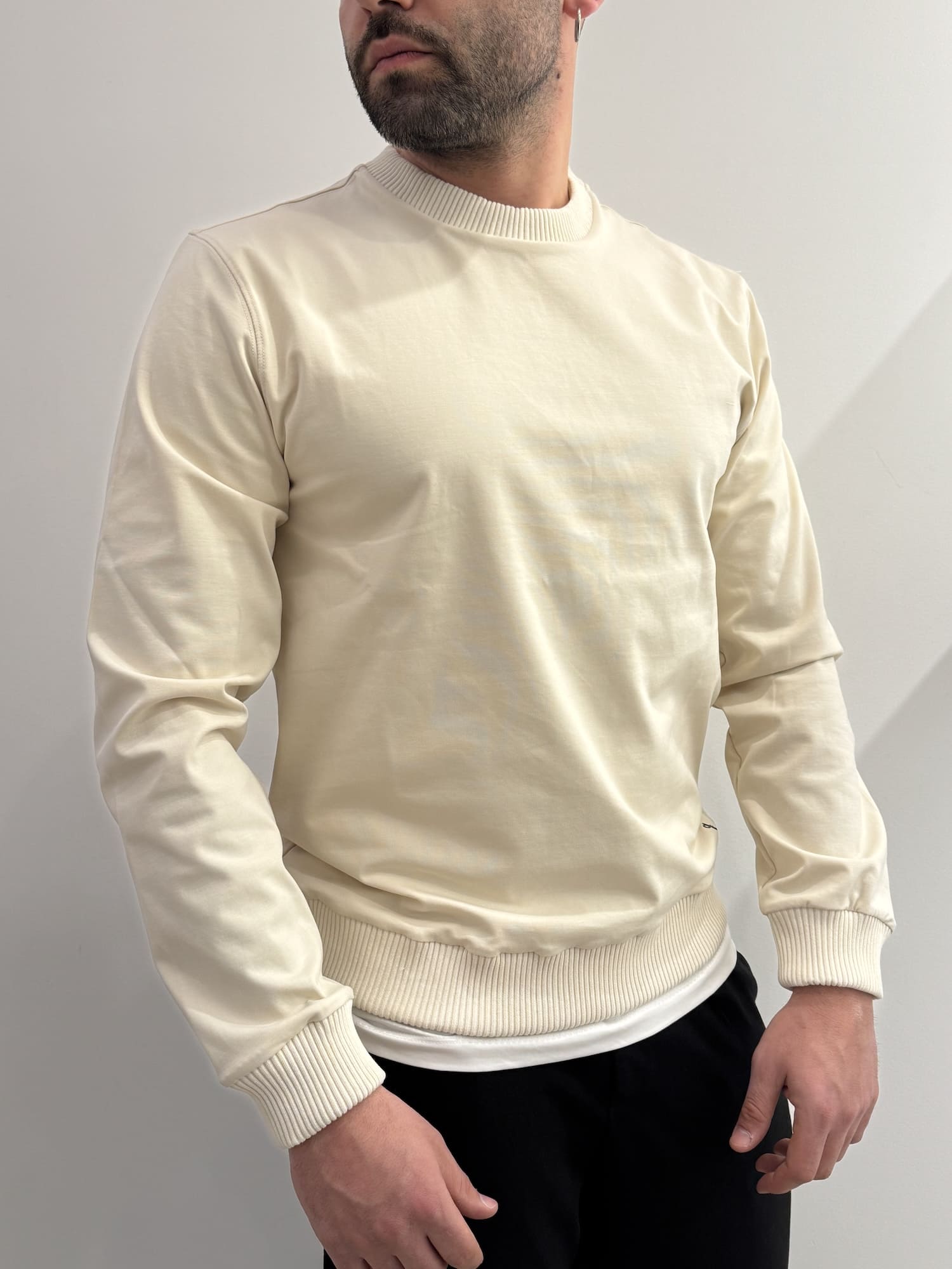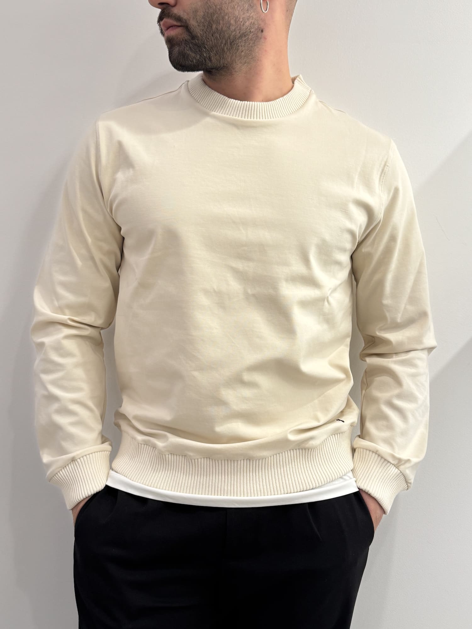 Felpa girocollo con bordi a coste in misto cotone alta qualità.