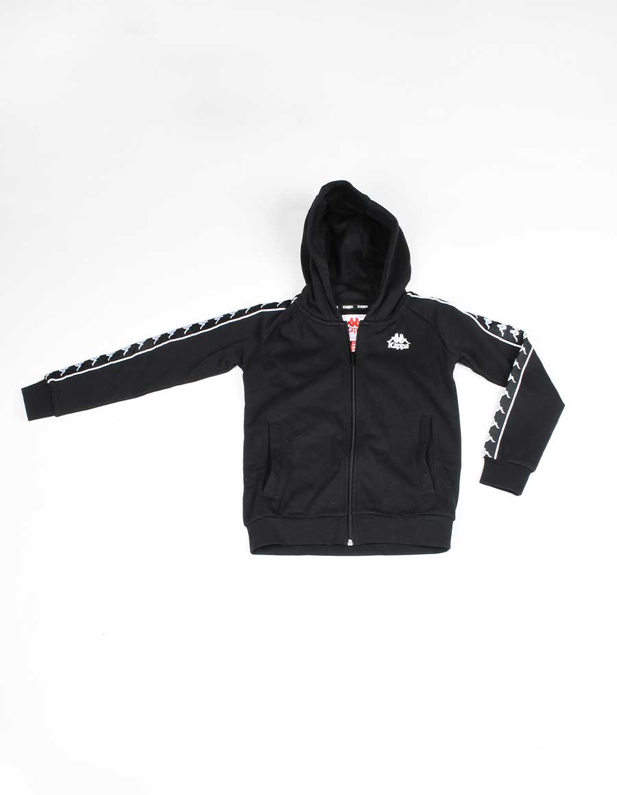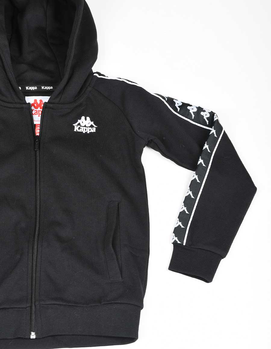 Felpa nera felpata con cappuccio e chiusura con zip. Logo omini ricamato sul petto. Materiale: 60% cotone, 40% polyestere.