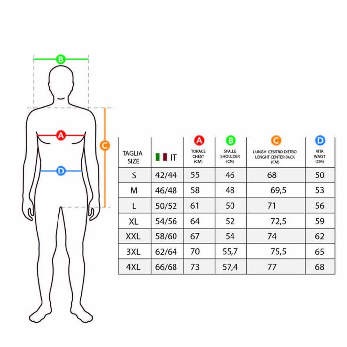 Tasche petto e tasche vita con bottoni a pressione nascosti, polsi con bottoni a pressione a vista. logo sea barrier platinum su manica sinistra.