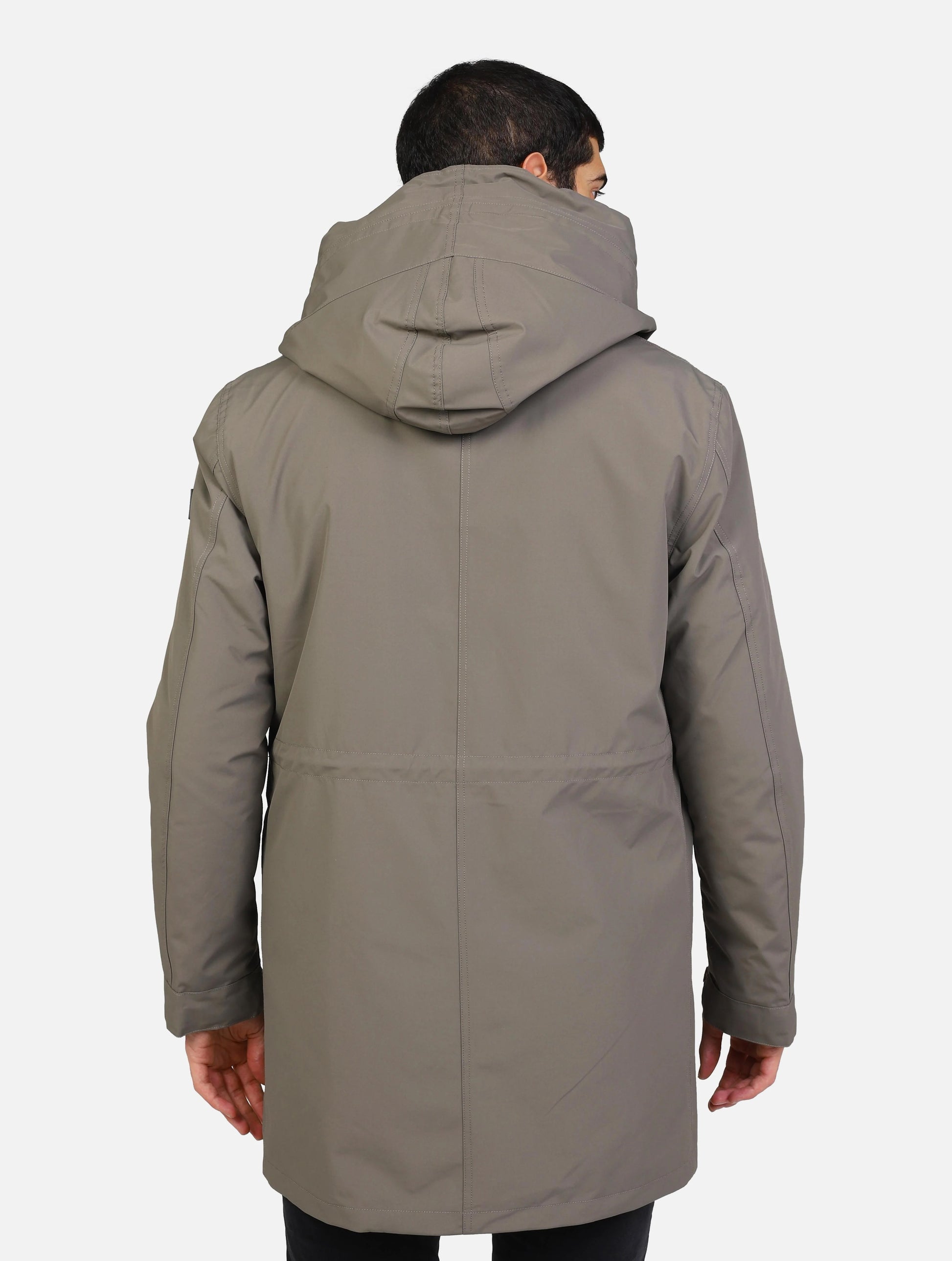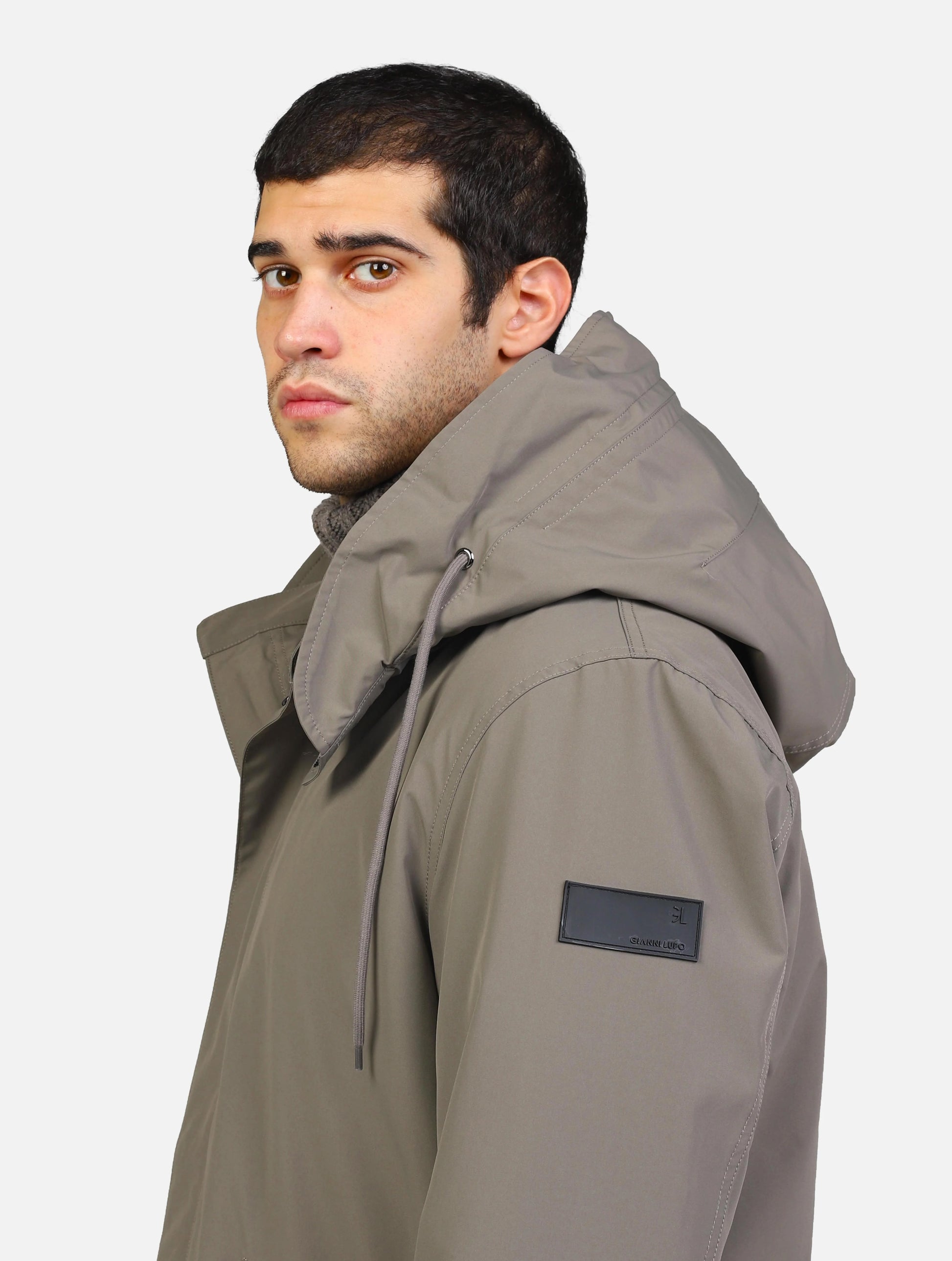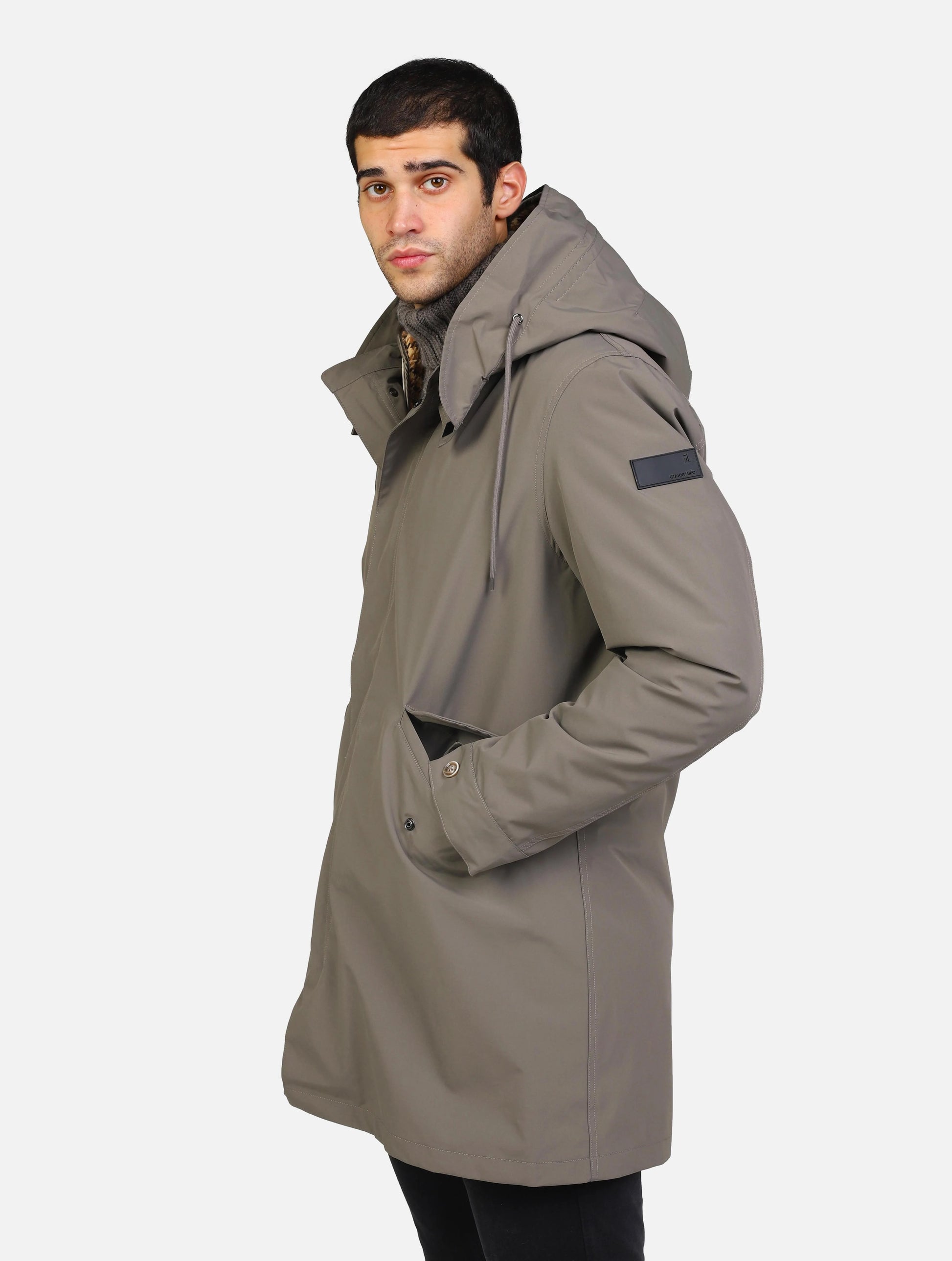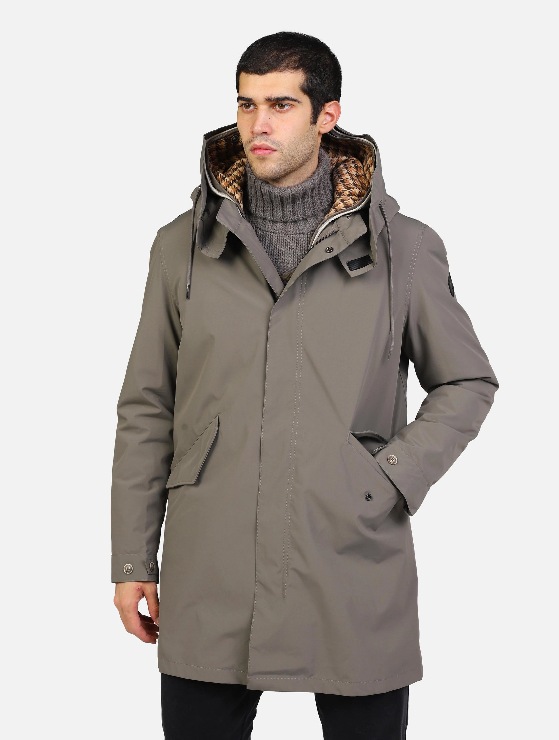 giubbotto parka impermeabile con due tasche frontali e cappuccio