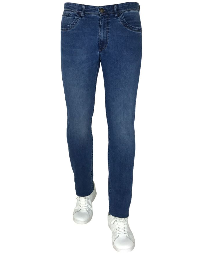 Jeans conformato Sea Barrier modello CONF-MOSES. Cinque tasche realizzato in twill, con trama nera.