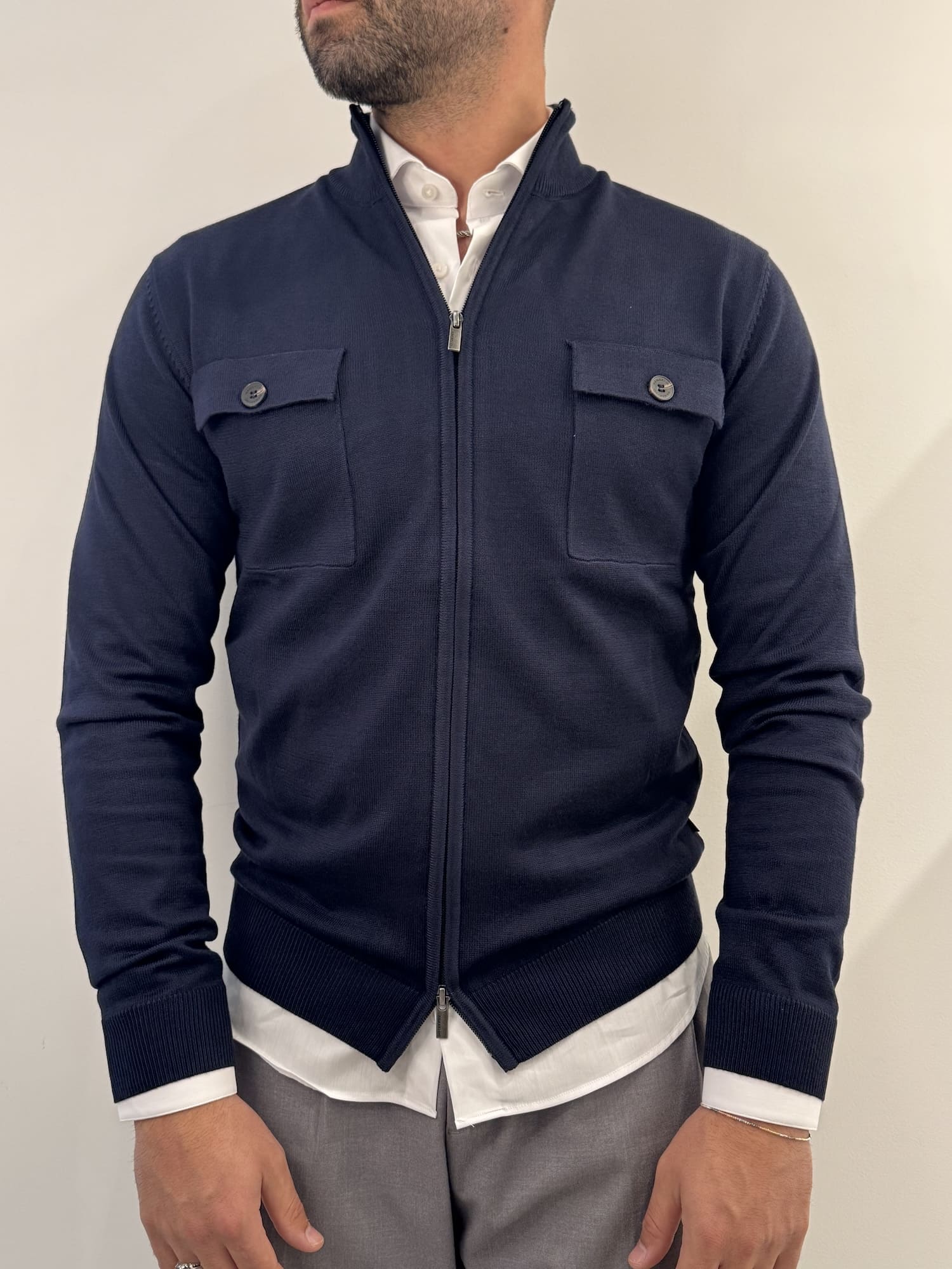 Lupetto in poliviscosa Hamaki-Ho full zip con tasche sul petto.