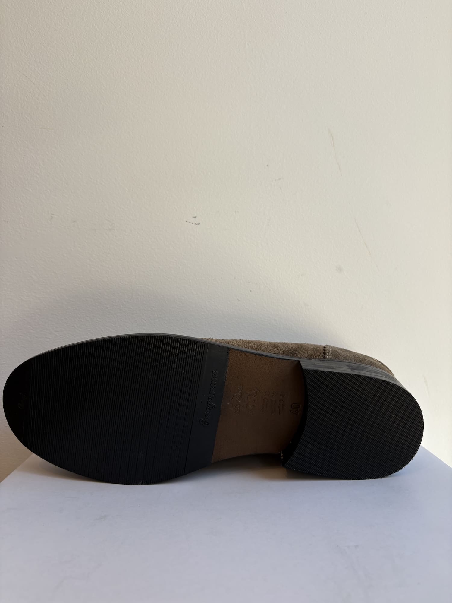 Queste scarpe sono un elegante modello college realizzato in Camoscio, che conferisce una texture raffinata e resistente.