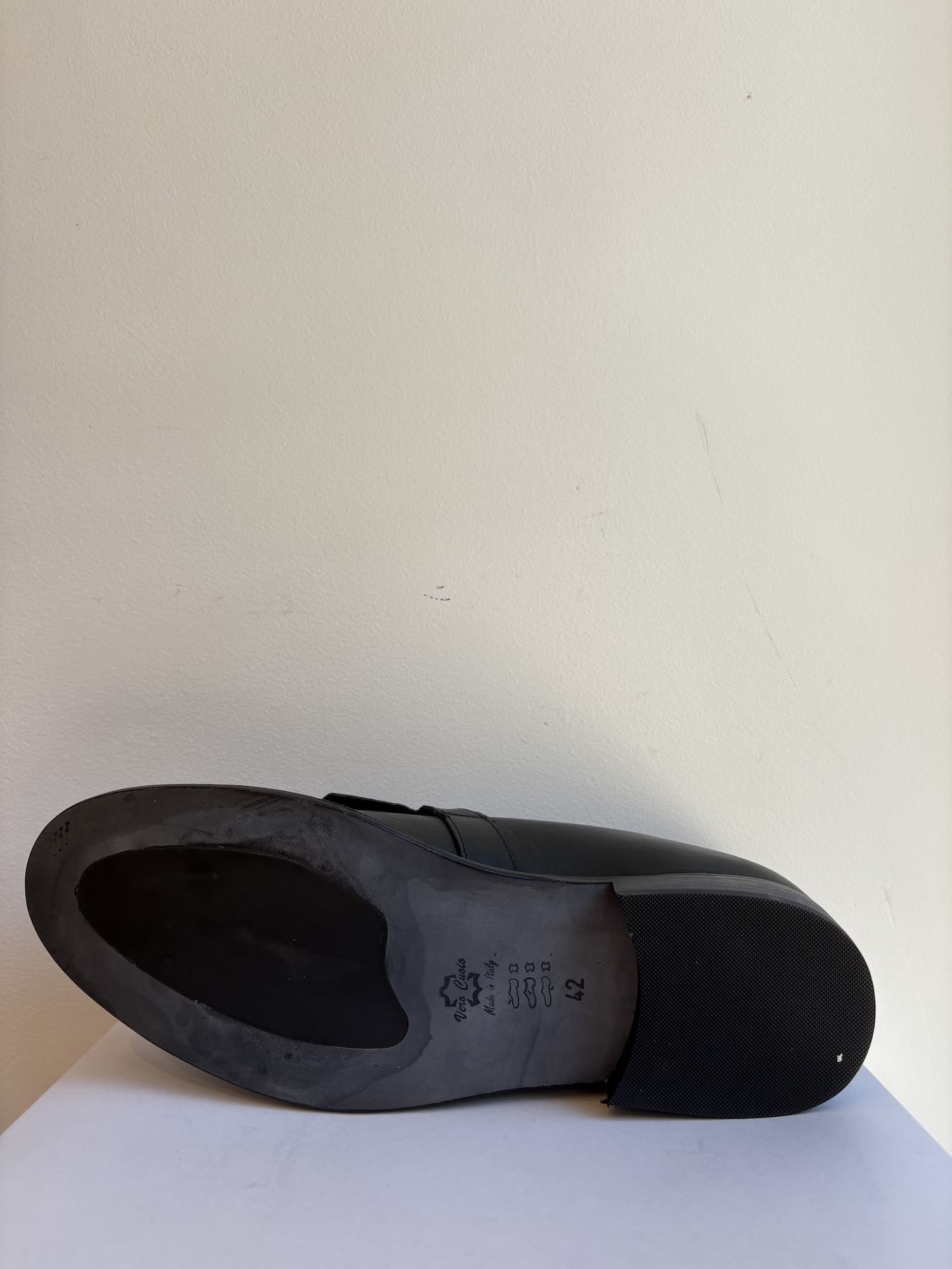 Mocassino Divan in pelle opaca con fibbia laterale e frangia.