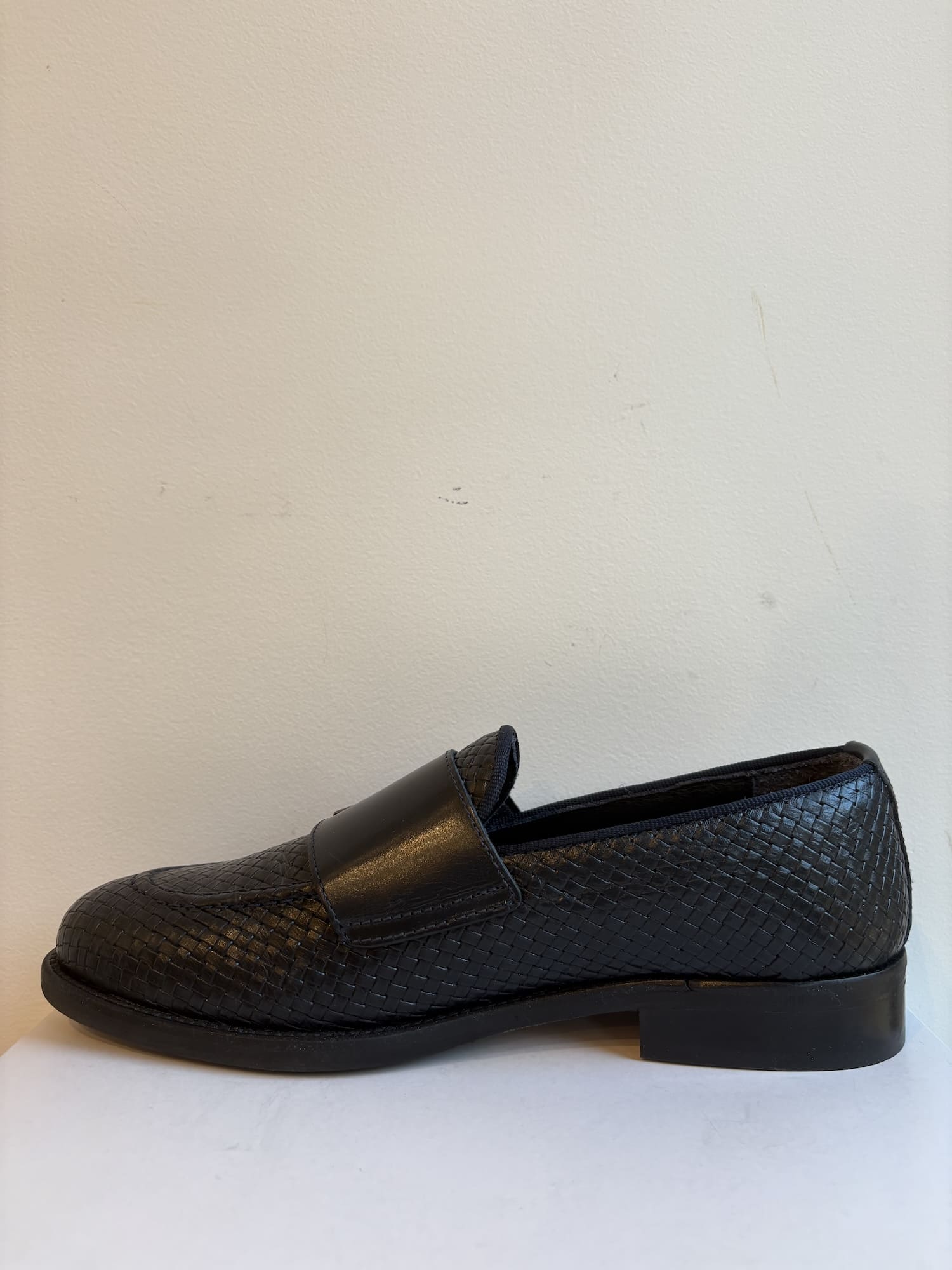 In vera pelle, made in Italy, con fondo in vero cuoio e mezza piantina in gomma anti scivolo.