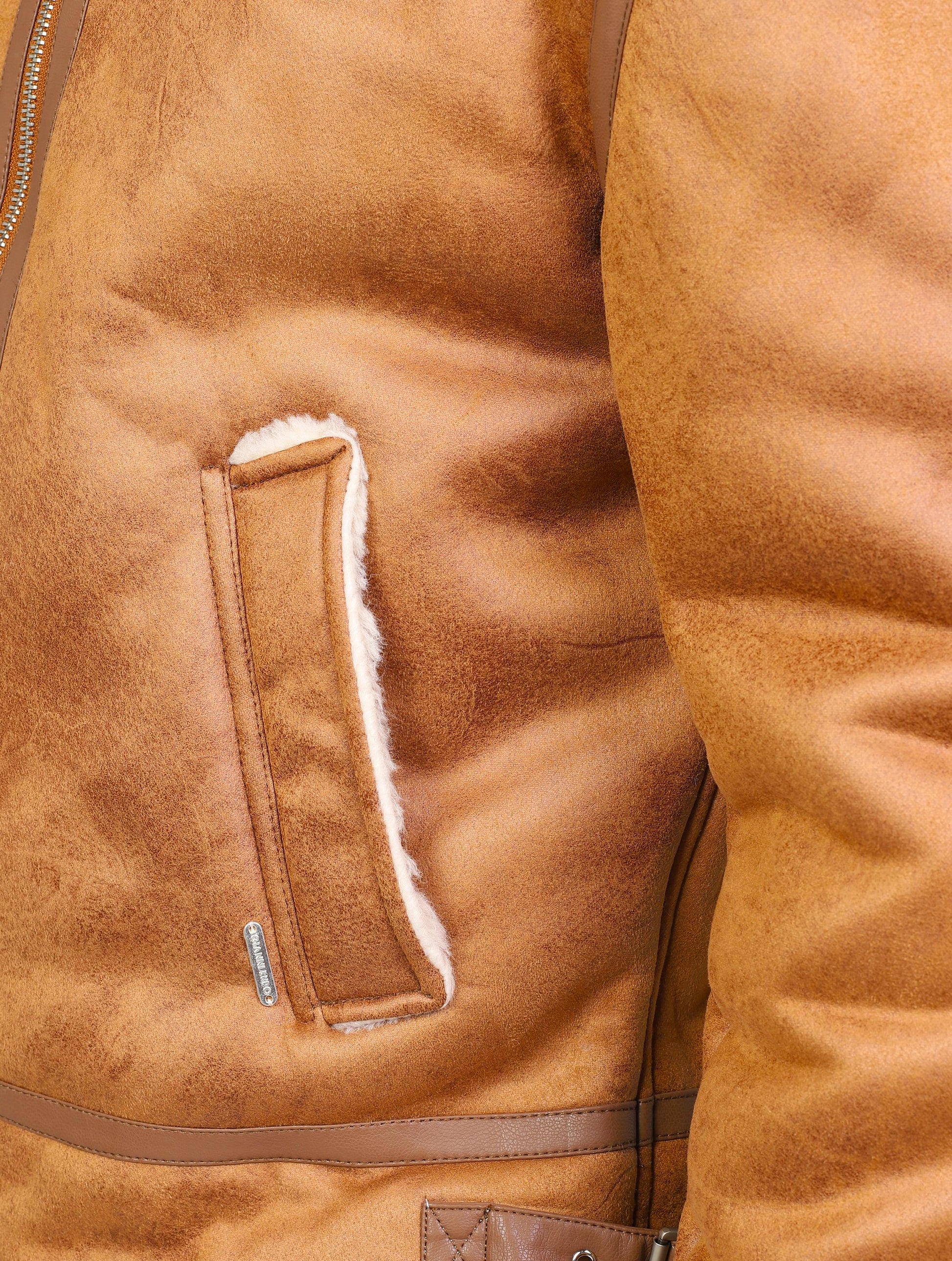 Giubbotto Gianni Lupo. Realizzato con effetto montone e dettagli in pile, offre comfort e calore. La chiusura a zip doppio cursore e la vita regolabile lo rendono pratico e versatile. Ideale per un look urbano e alla moda.