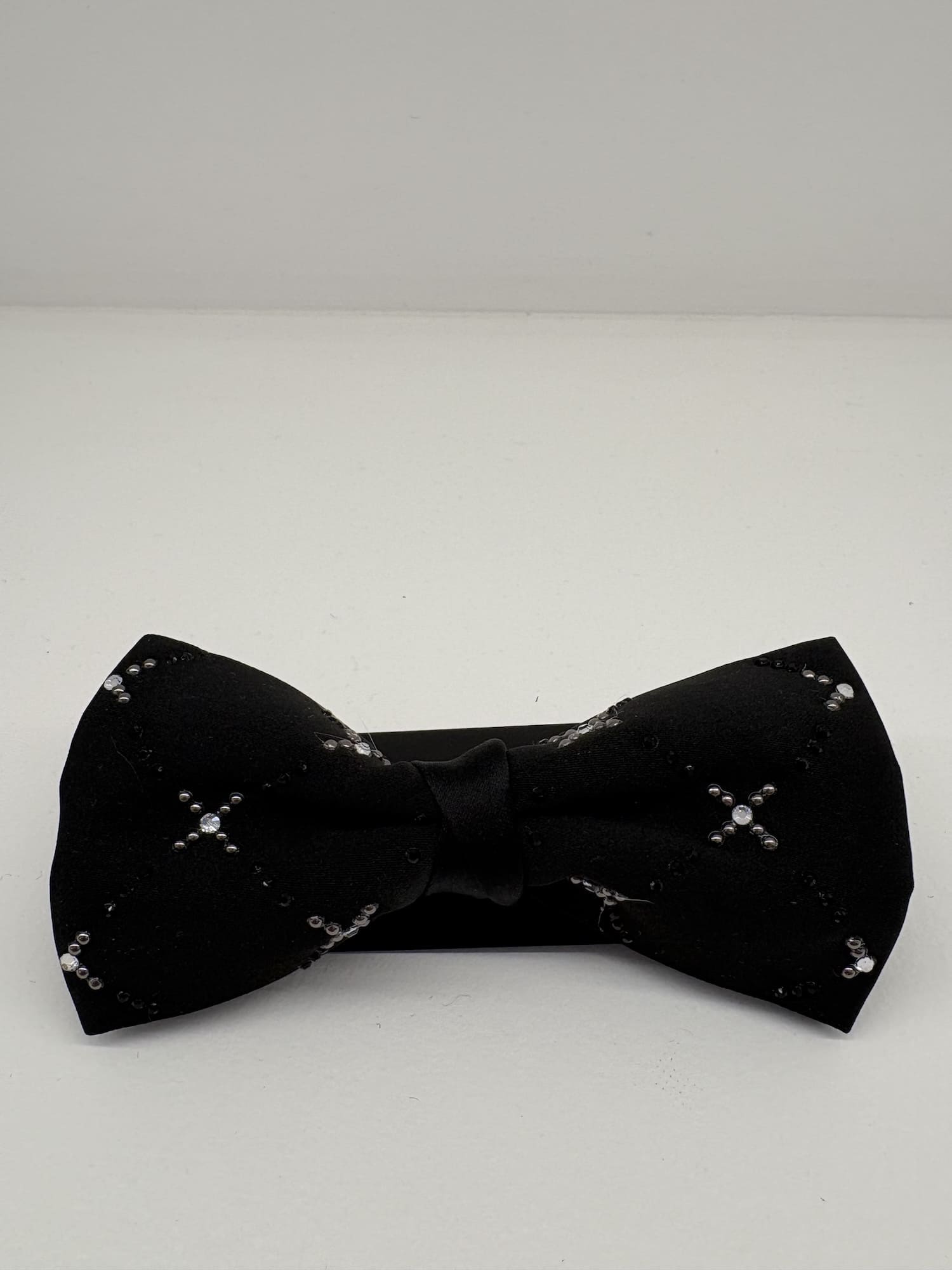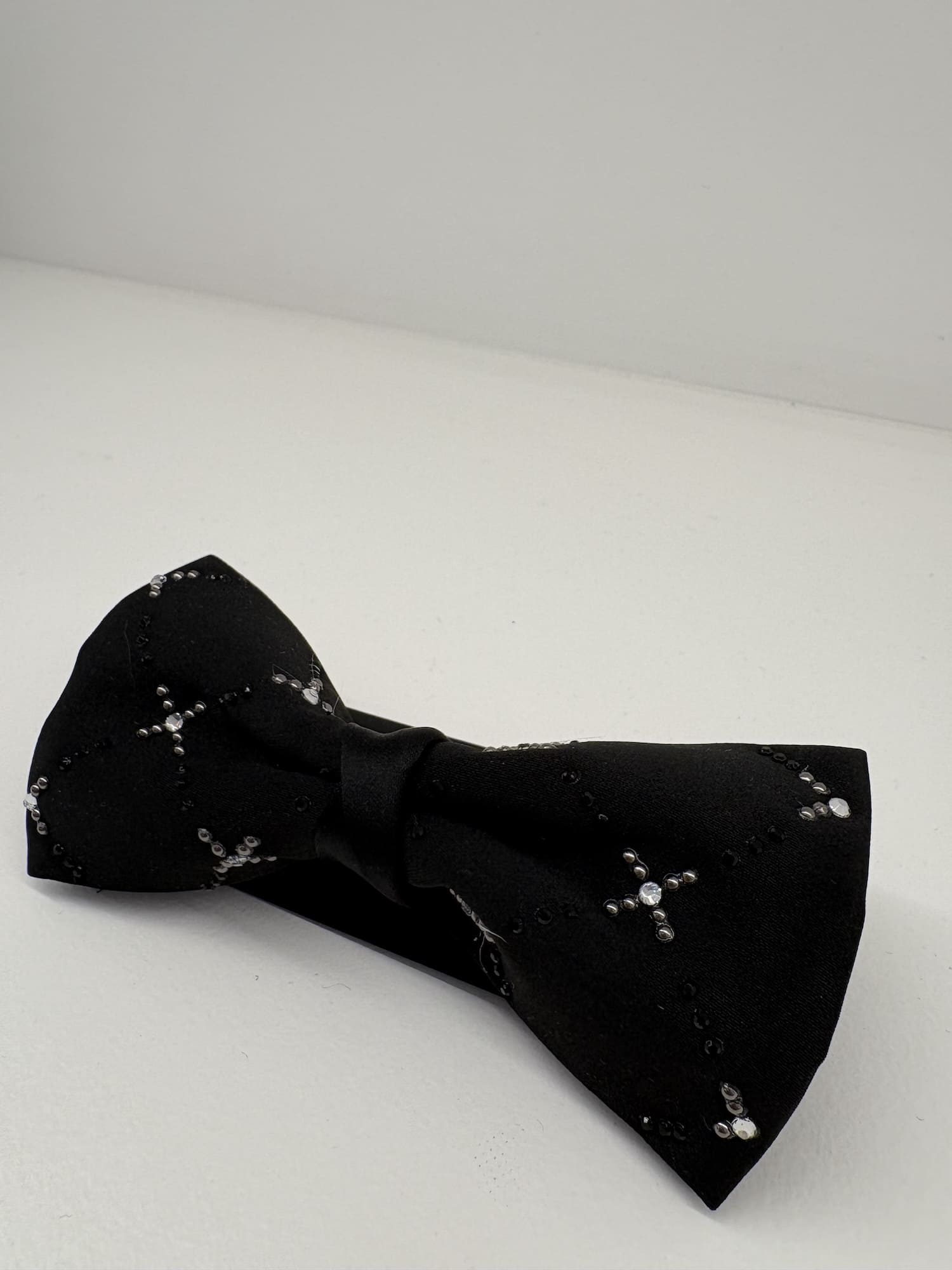 Papillon raso nero motivo con borchie e strass