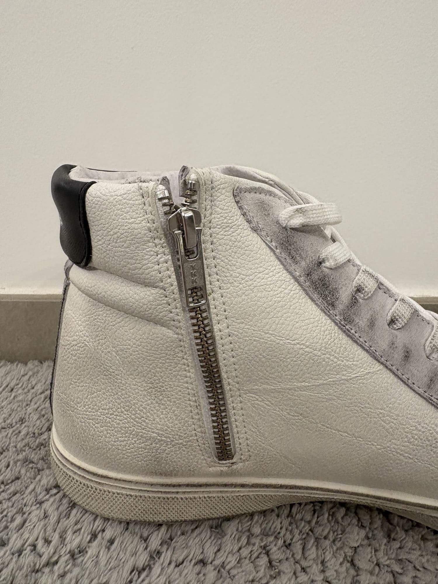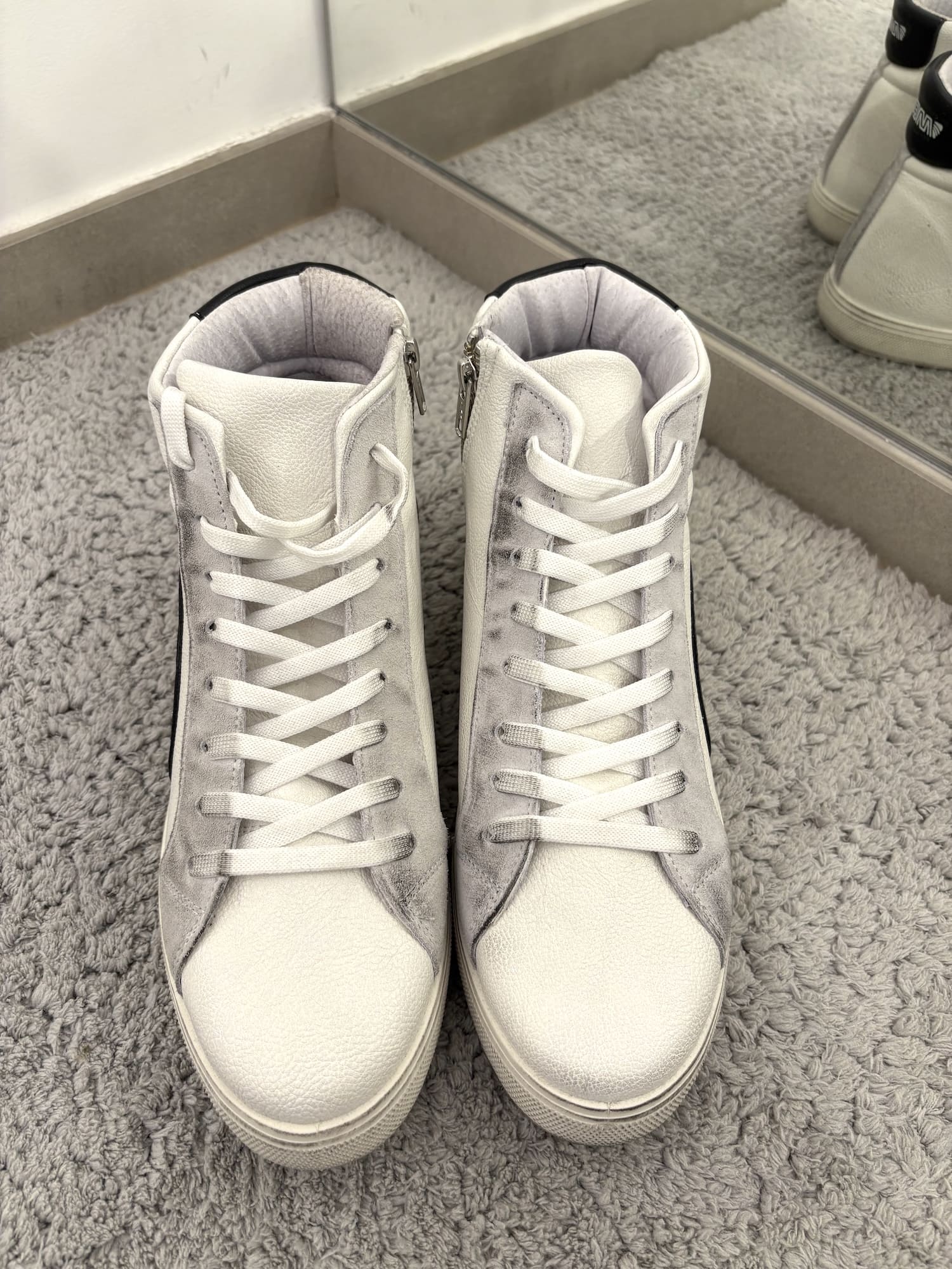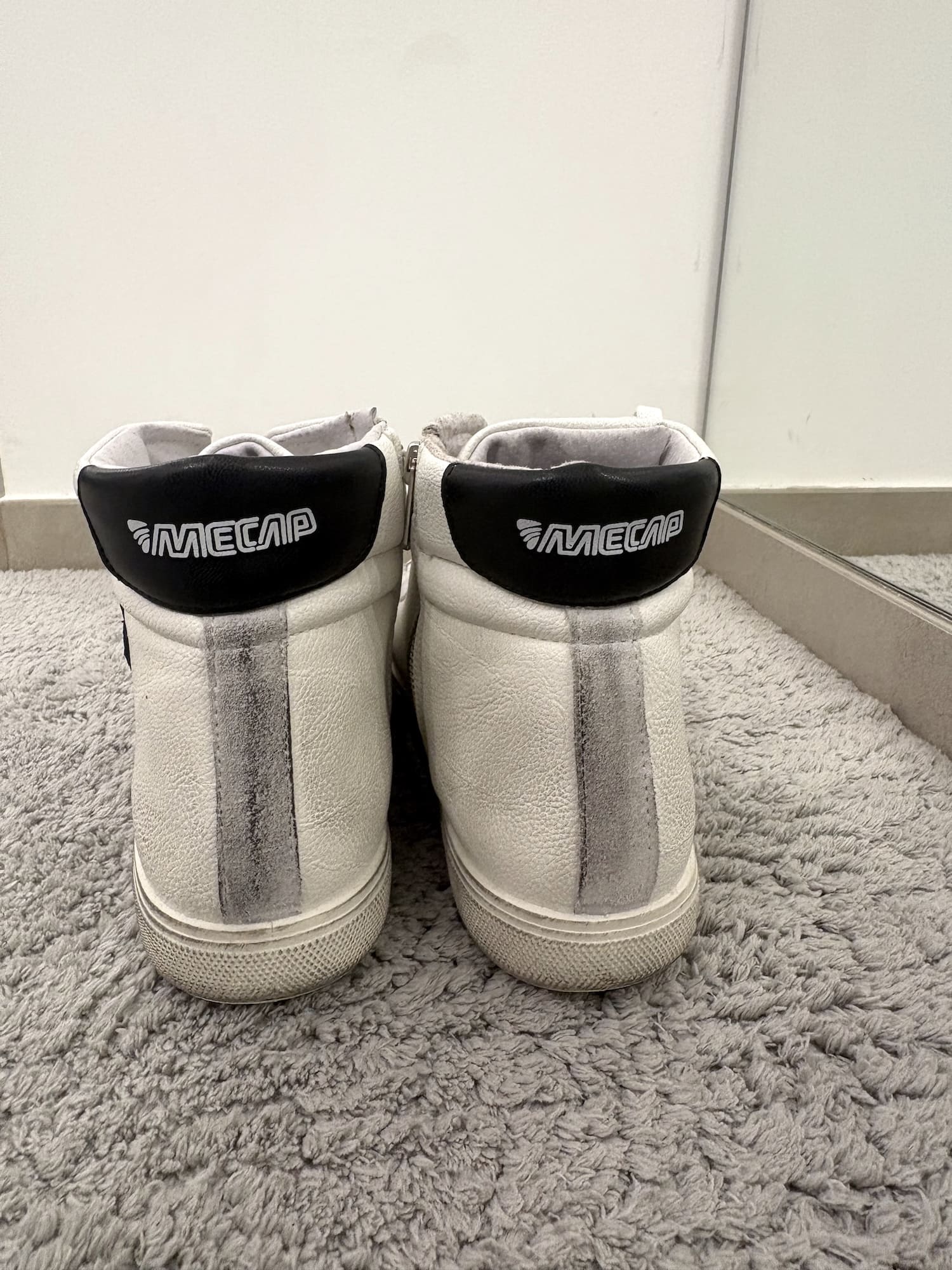 Scarpa Mecap alta in pelle con logo sui lati e chiusura con cerniera sul lato e lacci.