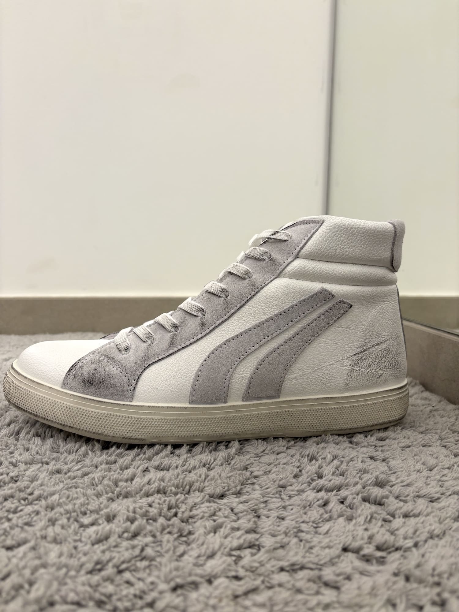 Scarpa Mecap alta Bianco e Grigio in pelle e logo sui lati.