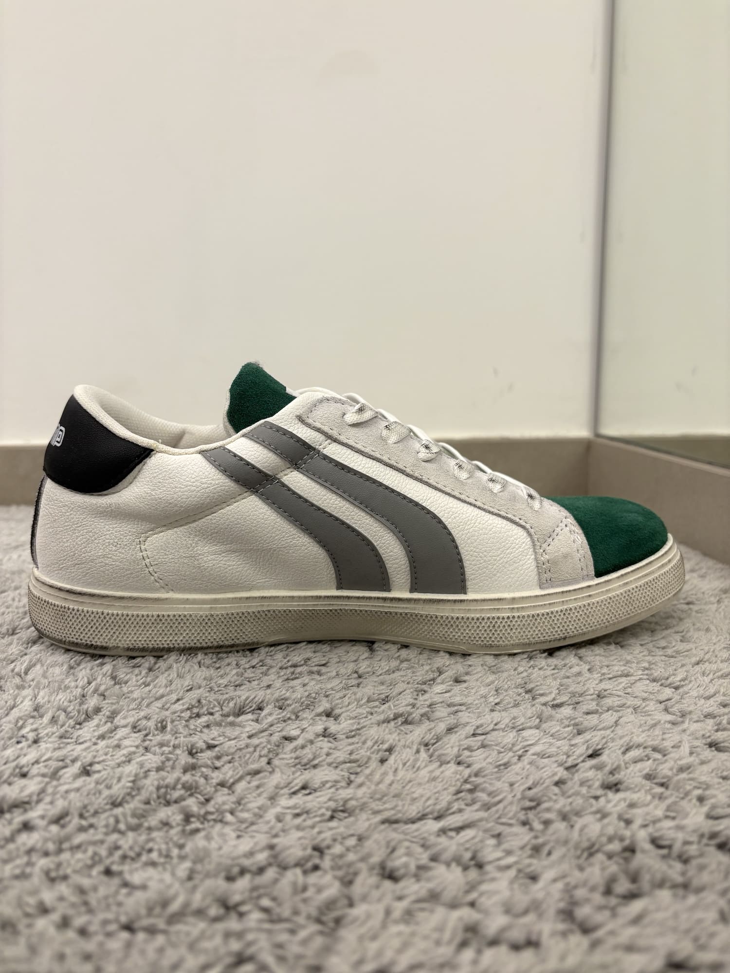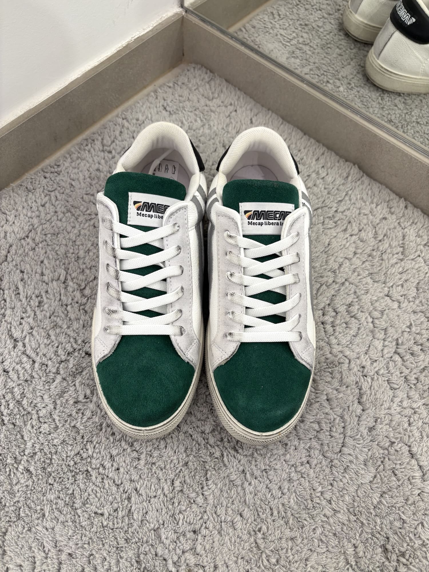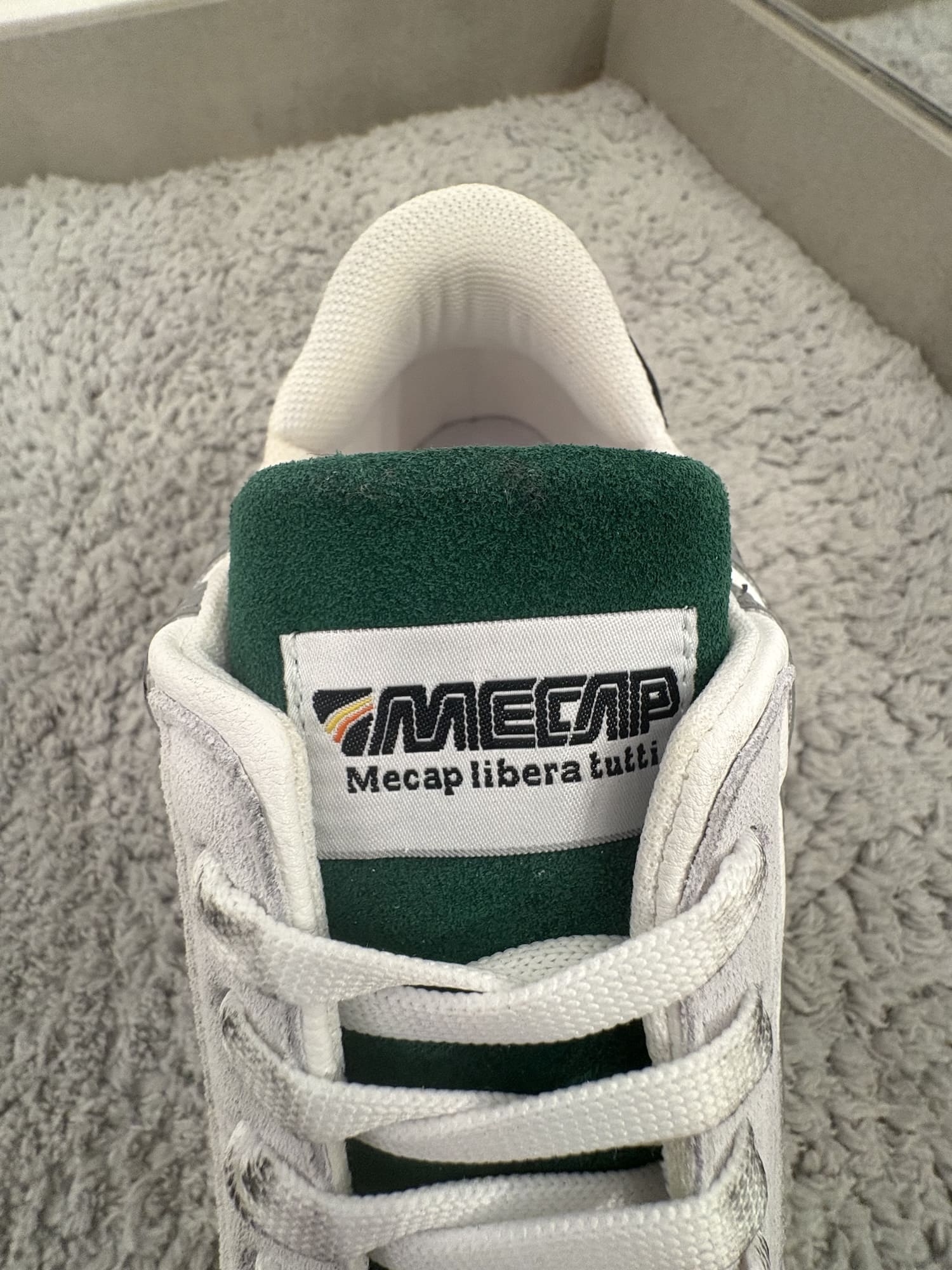 Scarpa Mecap Bianco Verde con pattella in camoscio verde.