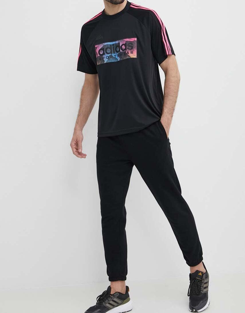 T-shirt Adidas con logo centrale e tre righe sulle maniche