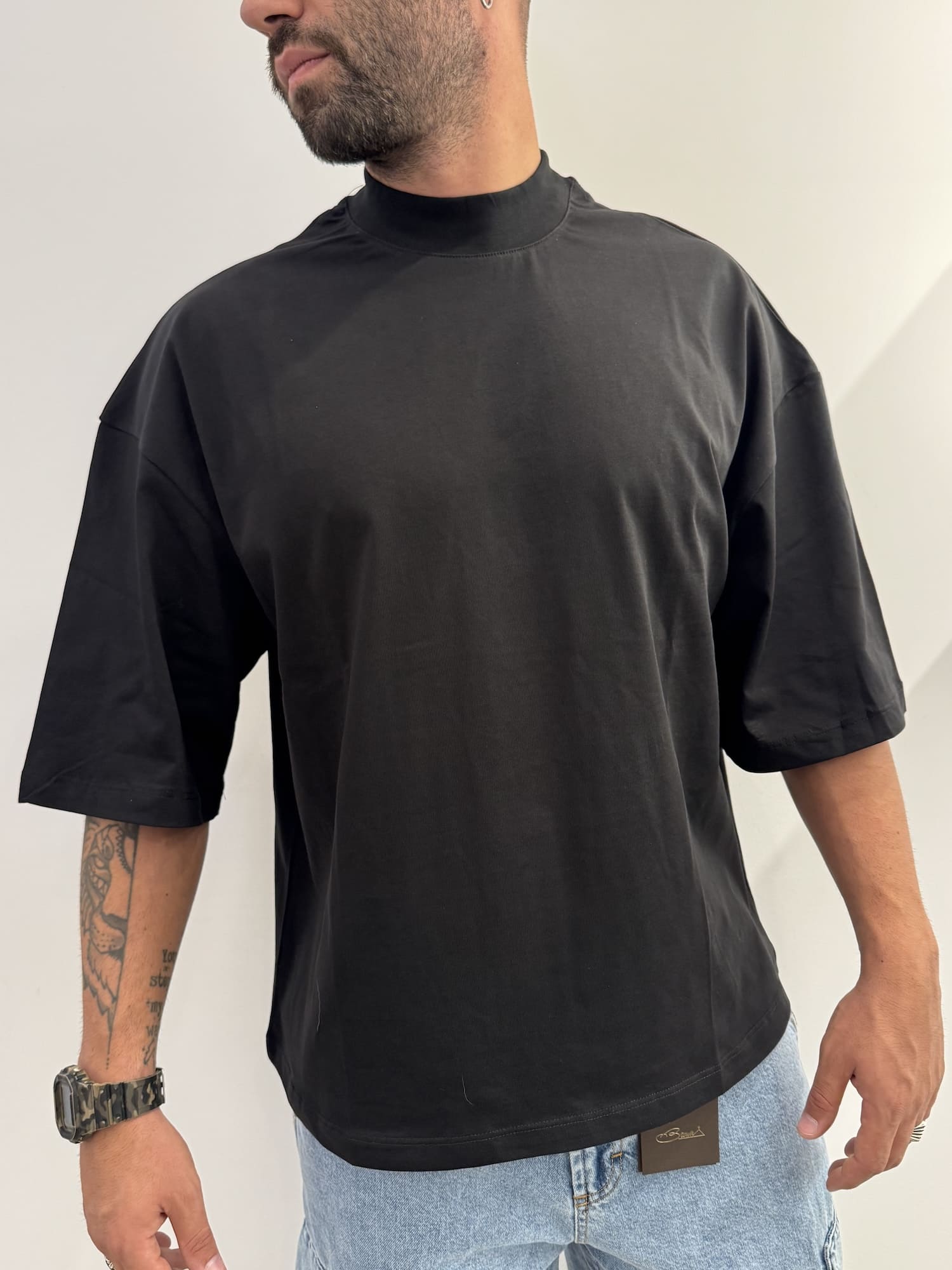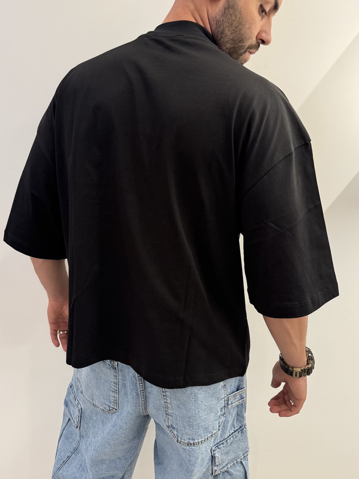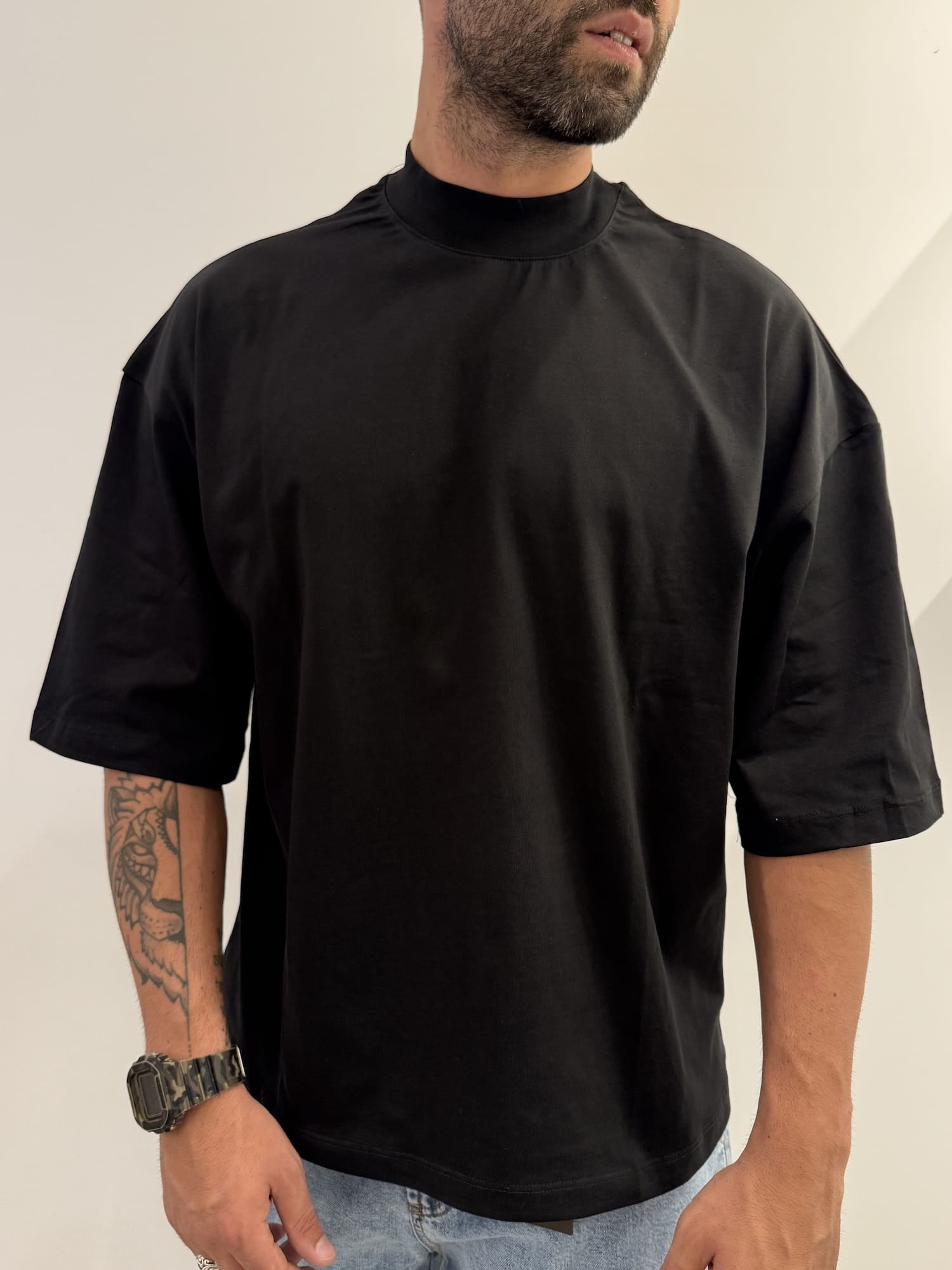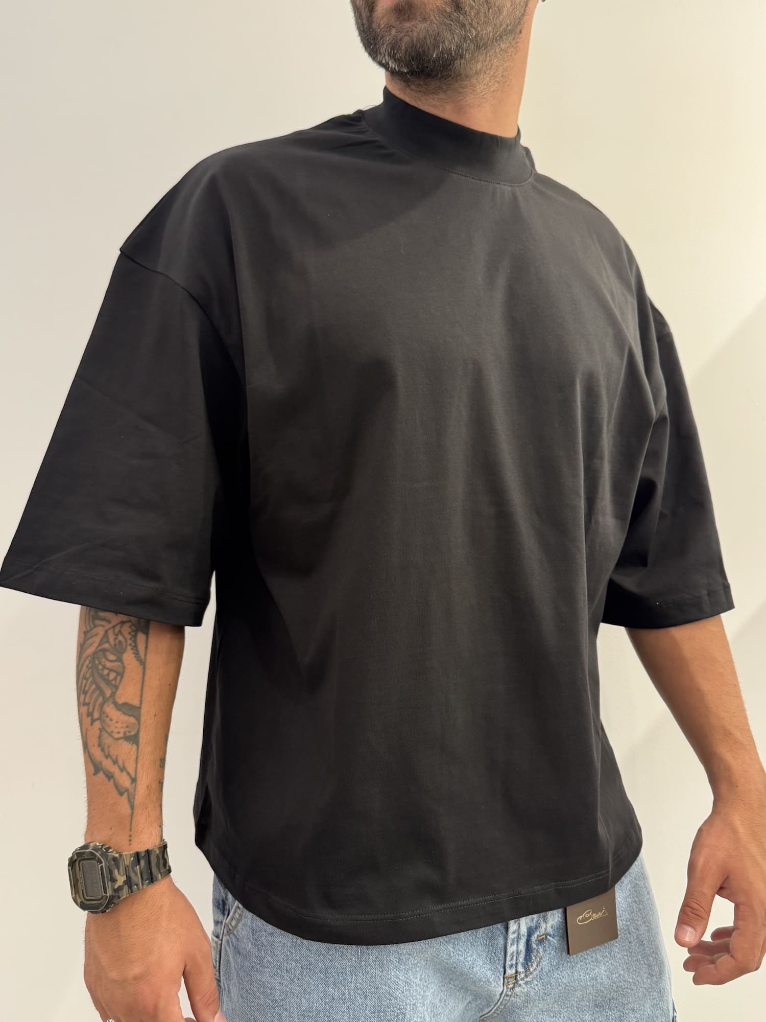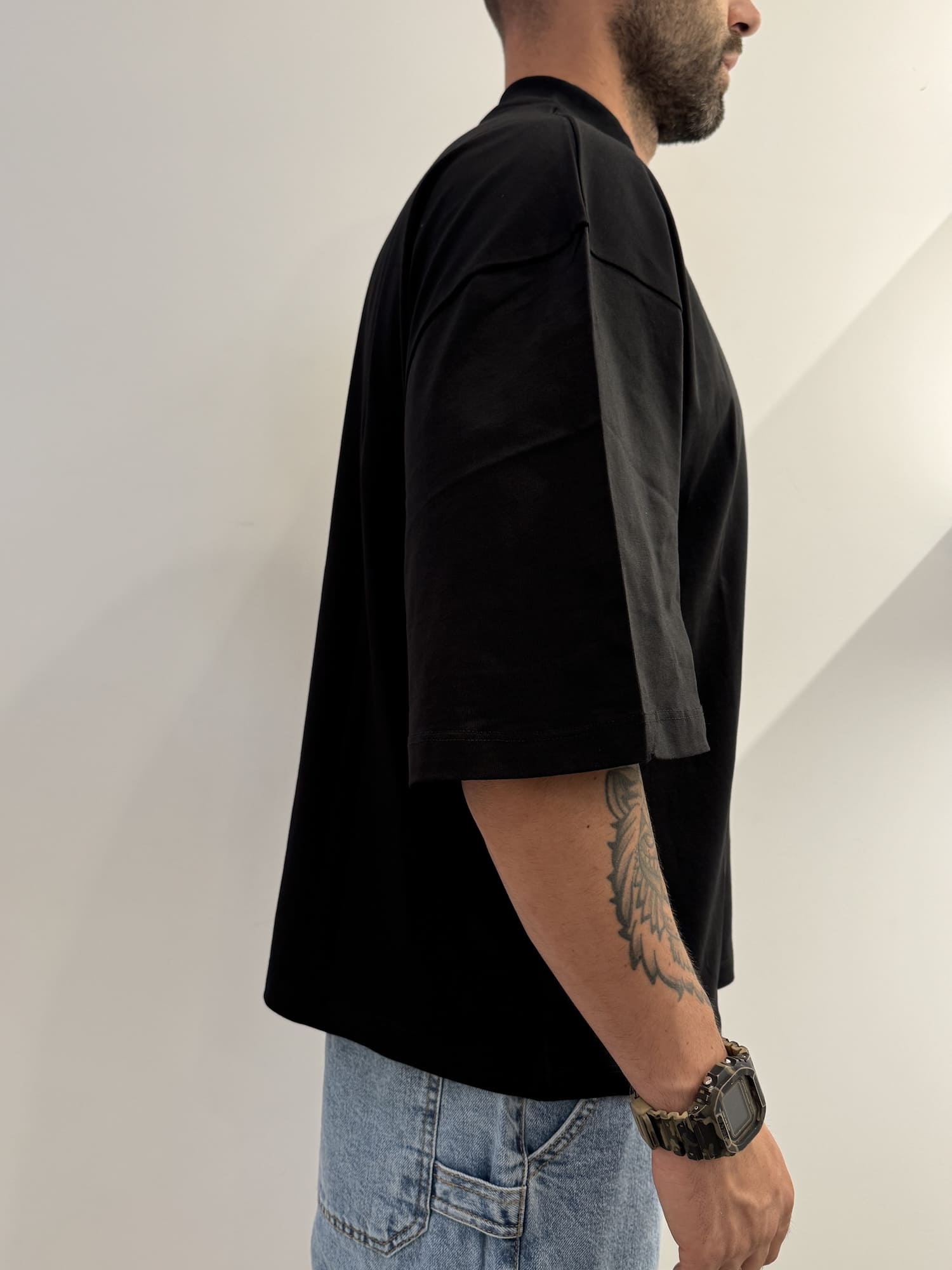 T-shirt boxy fit con manica lunghezza gomito e collo con costina alta