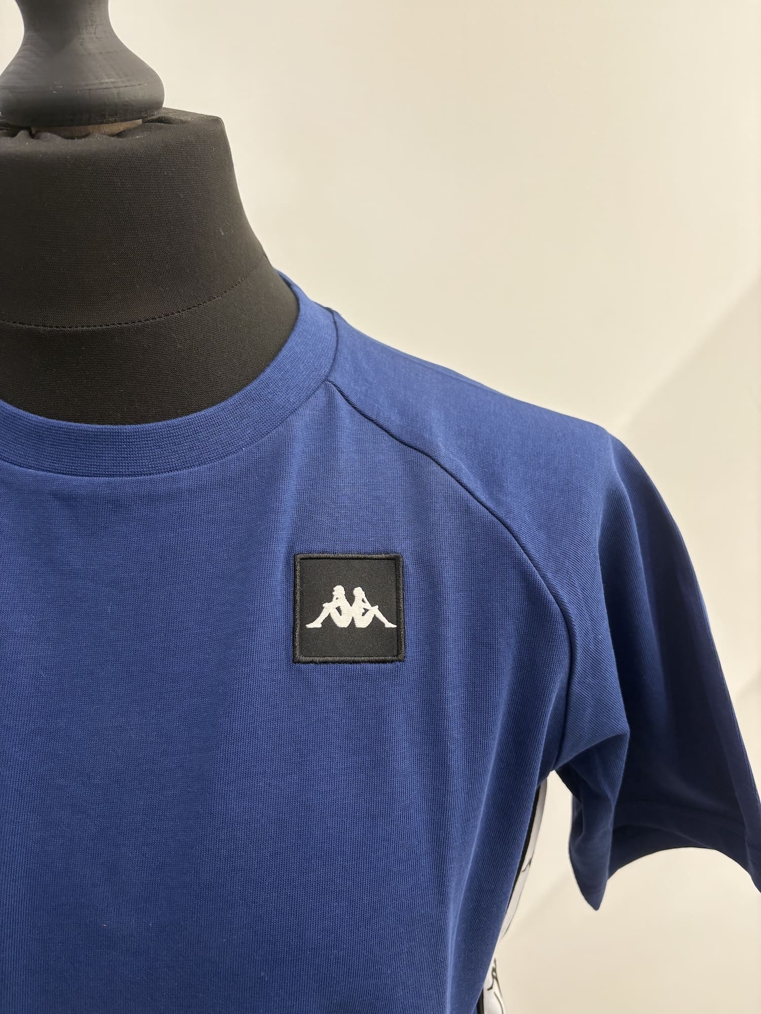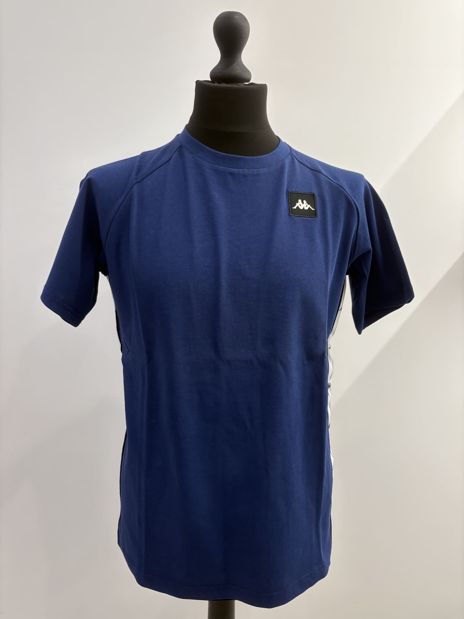 T-shirt Kappa con bande laterali e logo sul petto.